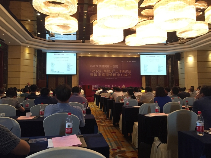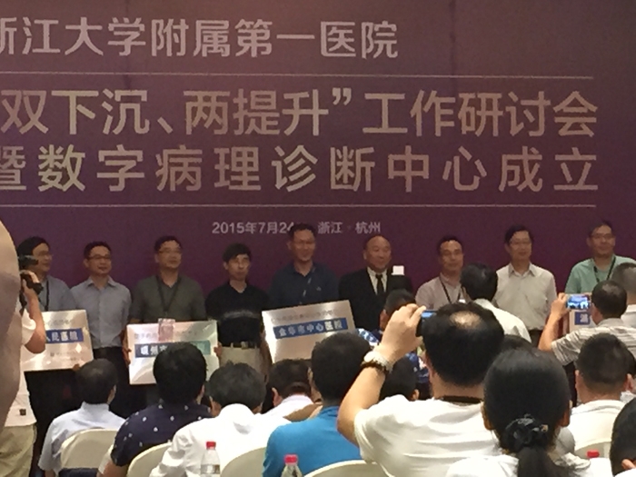 7月24日下午,浙江大學(xué)附屬第一醫(yī)院主辦了“雙下沉、兩提升”工作研討會(huì)暨數(shù)字病理診斷中心成立大會(huì),我院胡建邦副院長(zhǎng)、醫(yī)務(wù)處、信息處、病理科負(fù)責(zé)人受邀參加了會(huì)議。