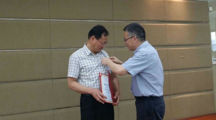 羅建紅副校長為詹銀楚佩戴校徽并頒發(fā)證書