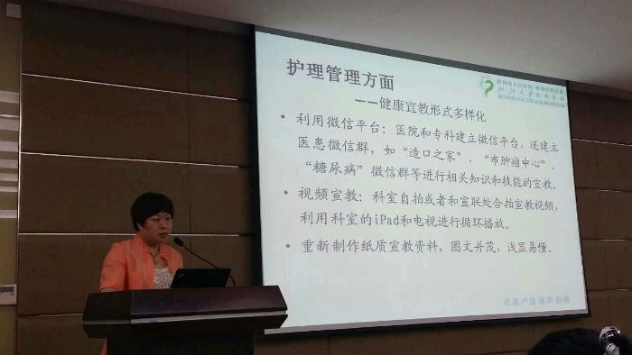 我院護(hù)理部主任徐勤容作為合作醫(yī)院的優(yōu)秀學(xué)科代表上臺做經(jīng)驗介紹