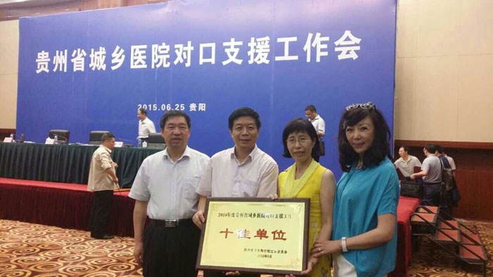 ??? 6月25日喜訊傳來,在貴陽召開的貴州省城鄉(xiāng)醫(yī)院對口支援工作會上,貴州省衛(wèi)生計生委黨組副書記、副主任黃平宣讀了《貴州省衛(wèi)生計生委關(guān)于2014年度貴州省城鄉(xiāng)醫(yī)院對口支援工作考核結(jié)果的通報》,并向城鄉(xiāng)醫(yī)院對口支援工作“十佳單位”和“成績突出個人”授牌。衢州市人民醫(yī)院在全省41家有支援任務(wù)的醫(yī)院中脫穎而出,被評為“浙黔對口支援醫(yī)院十佳單位”,周見副書記在大會上作交流發(fā)言。