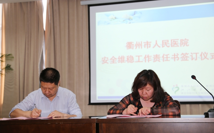 與此同時,分管副院長王巨宏與各部門科室代表簽訂了《衢州市人民醫(yī)院2015年安全維穩(wěn)工作責任書》。