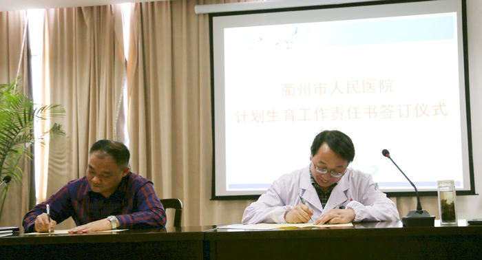 分管副院長王李華與各部門科室代表簽訂了《衢州市人民醫(yī)院2015年人口與計劃生育目標管理責任書》。