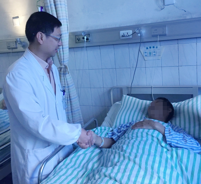 “真是太感謝你們了,謝謝你們救了我的命?!?月19日,我院為一例罕見的布加綜合征患者實施了手術(shù),手術(shù)成功后,患者王先生握著血管外科專家王李華的手,激動地說著感謝,同樣的一句話,不知重復(fù)了多少遍,每重復(fù)一遍,他的淚水就止不住流下來。這是喜悅的淚水,是感激的淚水,是劫后重生的淚水。