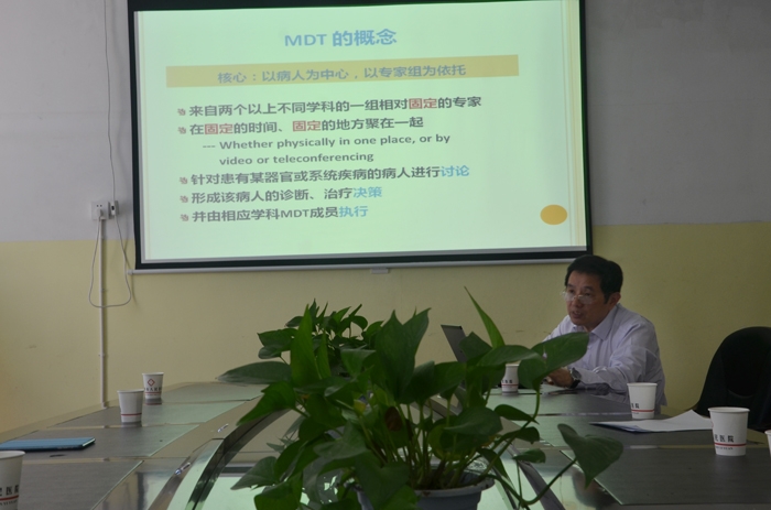 4月16日,國(guó)際著名腫瘤學(xué)專家、中國(guó)抗癌協(xié)會(huì)大腸癌專業(yè)委員會(huì)主任委員、浙江大學(xué)腫瘤研究所所長(zhǎng)、浙江大學(xué)教授、博士生導(dǎo)師張?zhí)K展教授來(lái)到我院腫瘤診治中心參與了大腸癌MDT討論,并為腫瘤中心成員帶來(lái)了《全國(guó)結(jié)直腸癌多學(xué)科綜合治療先進(jìn)技術(shù)示范推廣工程技術(shù)方案》一課。