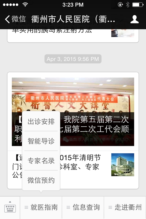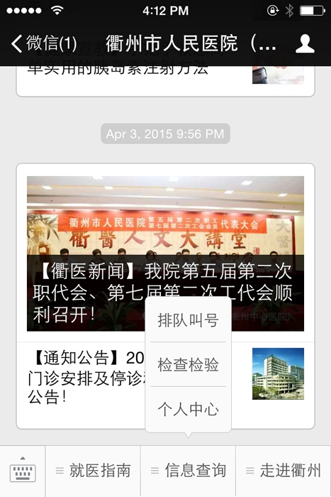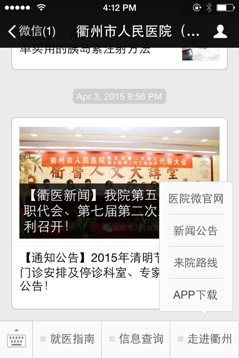 衢州市人民醫(yī)院微信公眾平臺新功能開通啦!