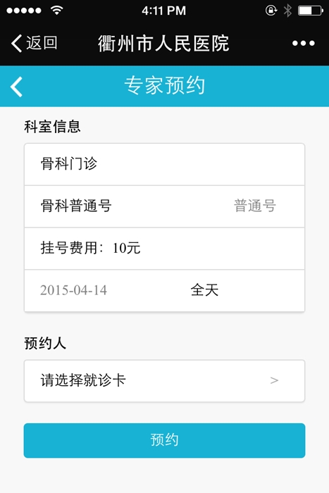 ??? 自衢州市人民醫(yī)院微信平臺上線以來,廣大市民感受到了使用微信平臺查詢信息的便捷,為了進(jìn)一步發(fā)揮微信的優(yōu)勢,近日,我院又在微信平臺原有功能的基礎(chǔ)上開通了其他功能,具體有醫(yī)院介紹、醫(yī)院導(dǎo)航、新聞公告、智能導(dǎo)診、門診預(yù)約掛號、取報(bào)告單、查詢歷史就診信息、叫號查詢。市民可以通過微信平臺體驗(yàn)查詢化驗(yàn)單、檢查單以及門診實(shí)時(shí)叫號信息等功能,足不出戶,即可獲取豐富的醫(yī)療信息和貼心的醫(yī)療服務(wù)。