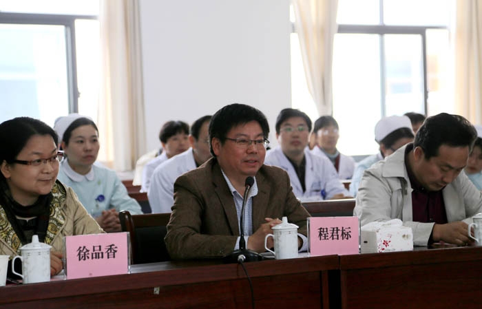 ?? ??? 程君標(biāo)致歡迎詞,對(duì)衢州市人民醫(yī)院開化分院掛牌成立表示祝賀。