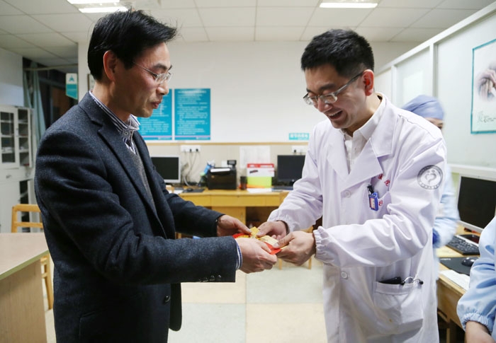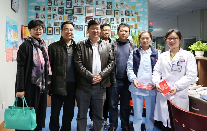 ??? 除夕夜,院領(lǐng)導(dǎo)先后走訪(fǎng)慰問(wèn)了四十多個(gè)科室,為兩百多名堅(jiān)守在一線(xiàn)的職工送去了新春祝福,大家的臉上都洋溢著幸福的笑容。