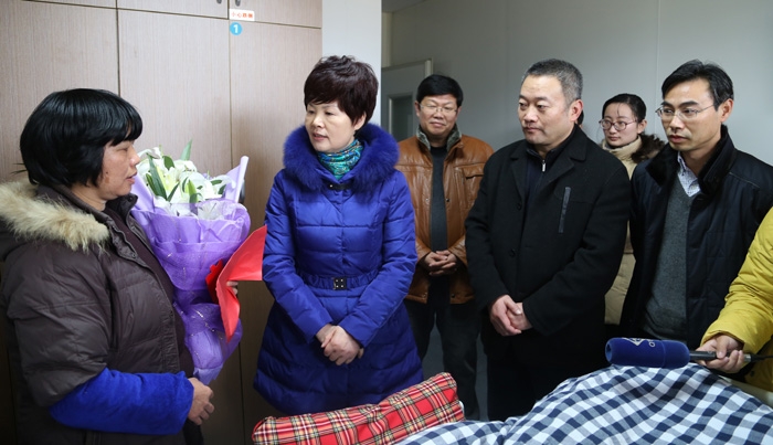 ??? 2月3日上午,市委常委、宣傳部長(zhǎng)諸葛慧艷一行來(lái)到我院浮石院區(qū)看望慰問(wèn)“最美司機(jī)”姜永古。