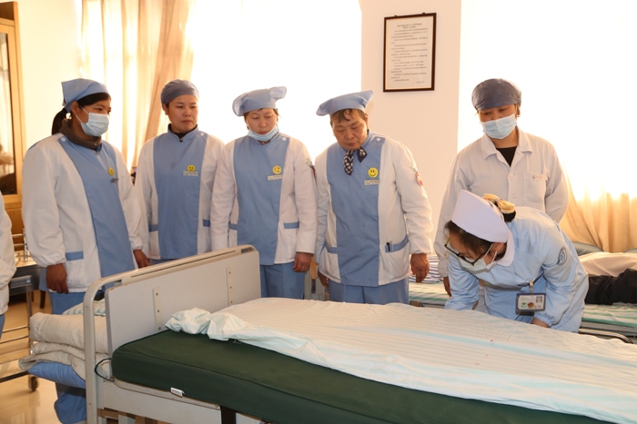 ??? 本次培訓(xùn)主要內(nèi)容包括院感相關(guān)知識,鋪床、更換床單位、口腔護(hù)理、皮膚護(hù)理、頭發(fā)護(hù)理操作流程、病人轉(zhuǎn)運(yùn)規(guī)范。分別由急診、內(nèi)科、外科護(hù)士長主講,并現(xiàn)場進(jìn)行操作演示,每位健康助理員逐一逐項練習(xí)。
