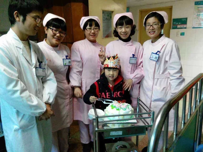 ??? 窗外寒風(fēng)蕭瑟,病房?jī)?nèi)真情暖暖,一群身著粉色護(hù)士服的阿姨和醫(yī)生叔叔帶著蛋糕,齊聲唱起了生日快樂(lè)歌,祝愿小朋友早日康復(fù)。周心怡和周爸爸都被這意外的驚喜感動(dòng)了,“因?yàn)榕畠旱淖≡憾臒?,把生日的事情都給忘了。你們的服務(wù)真貼心,在這里有家的感覺(jué)!謝謝你們!”
