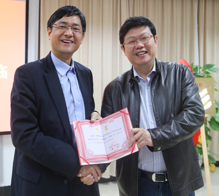 陳震宏院長向汪審清教授頒發(fā)“特聘專家”聘書