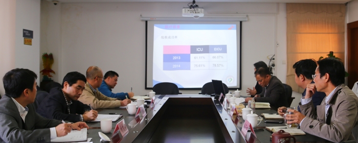 ??? 11月21日下午,市衛(wèi)生局陳根成局長,周衛(wèi)華副局長,醫(yī)政處處長劉文勇一行來我院調(diào)研省區(qū)域?qū)2≈行慕ㄔO(shè)單位——泌尿外科,省區(qū)域?qū)2≈行呐嘤龁挝弧匕Y監(jiān)護中心。院領(lǐng)導班子、部分職能部門負責人及科主任、護士長參加了座談會。