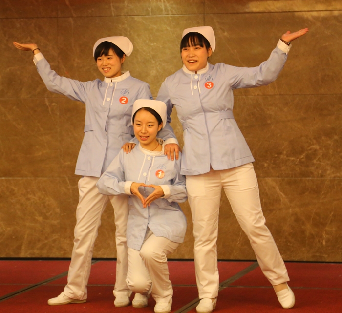 ??? 本次競賽有來自全市各縣(市、區(qū))的30名護(hù)士分別組成10支代表隊(duì),小虎隊(duì)、夢之隊(duì)、花仙子隊(duì)、降糖先鋒隊(duì)、飛揚(yáng)隊(duì)、火焰隊(duì)、錢江源天使隊(duì)、風(fēng)之采隊(duì)、神針隊(duì)、攜手隊(duì)參加比賽。大賽分風(fēng)采展示和知識競賽兩個(gè)階段進(jìn)行。首先是團(tuán)隊(duì)風(fēng)采展示階段, 10支代表隊(duì)依次入場,各展所長,配以賞心悅目的ppt、動(dòng)感十足的音樂、優(yōu)美妙曼的舞姿、膾炙人口的快板,展現(xiàn)了團(tuán)隊(duì)風(fēng)采,隊(duì)名響亮勵(lì)志,口號昂揚(yáng)向上。