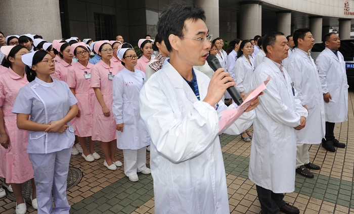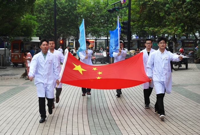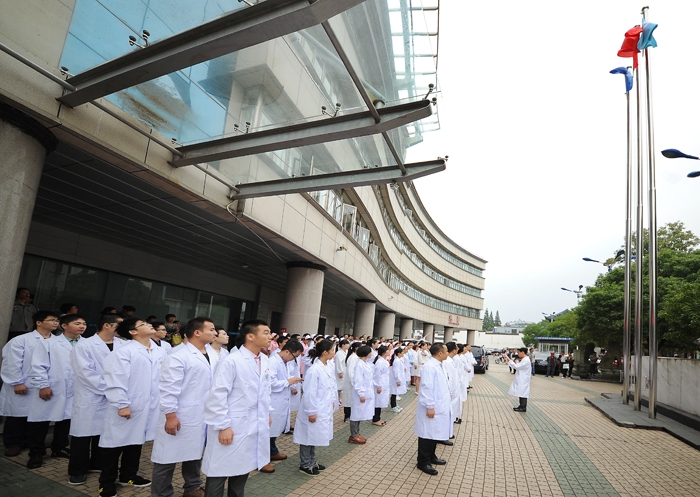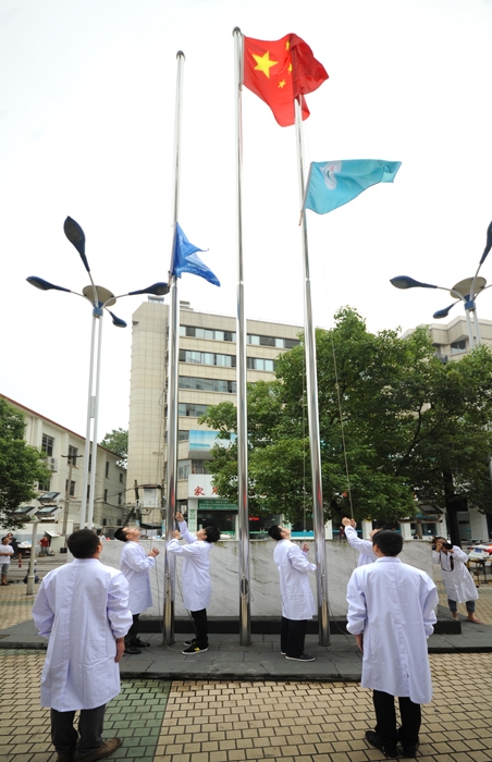 ??? 面對(duì)在晨曦中迎風(fēng)飄揚(yáng)的五星紅旗,洋溢著一種強(qiáng)烈的愛(ài)國(guó)熱情。唱院歌,升院旗、醫(yī)學(xué)會(huì)會(huì)旗,讓我們堅(jiān)守“健康所系,生命相托”的神圣使命,牢記“恪盡職守?善待病人”的服務(wù)宗旨,謹(jǐn)記“忠誠(chéng)、嚴(yán)謹(jǐn)、謙和、創(chuàng)新”的八字院風(fēng)。