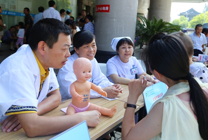 ??? 8月1日上午,我院在門診大樓前舉行了義診活動,產(chǎn)科、兒科的專家們?yōu)槭忻窬湍溉槲桂B(yǎng)問題答疑解惑,發(fā)放健康教育宣傳冊100余份。下午在門診5樓示教室舉辦“孕婦學(xué)?!?,專業(yè)人士為準(zhǔn)媽媽們講解“母乳喂養(yǎng) 母嬰健康”的相關(guān)知識,向孕產(chǎn)婦及其家屬宣傳母乳喂養(yǎng)的好處和技巧,受到了廣泛的好評。
