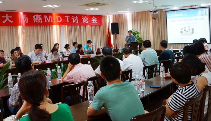 ??? 會(huì)上,陳院長(zhǎng)對(duì)浙二醫(yī)院腫瘤中心MDT團(tuán)隊(duì)的到來(lái)表示了熱烈歡迎。張?zhí)K展教授介紹了浙二醫(yī)院直腸癌MDT團(tuán)隊(duì)建設(shè)的過程,袁瑛教授作2014ASCO直腸癌亮點(diǎn)的專題講座。隨后,浙二醫(yī)院和我院共提供了5份病例,我院腫瘤外科、腫瘤內(nèi)科、放療科、肝膽外科、病理科、放射影像科等多科的代表針對(duì)患者均發(fā)表了各自的看法。經(jīng)過熱烈的討論后,浙二醫(yī)院腫瘤中心MDT團(tuán)隊(duì)的專家進(jìn)行了總結(jié),為患者制定了規(guī)范化、綜合化、個(gè)體化的診療方案。