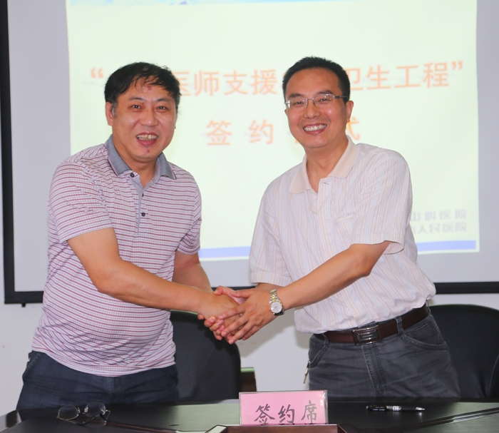 ??? 為貫徹《衢州市深化萬(wàn)名醫(yī)師支援農(nóng)村衛(wèi)生工程工作實(shí)施方案》,積極落實(shí)“萬(wàn)名醫(yī)師支援農(nóng)村衛(wèi)生工程”,6月24日下午,我院與開(kāi)化縣人民醫(yī)院簽署對(duì)口支援協(xié)議,建立了對(duì)口支援關(guān)系。