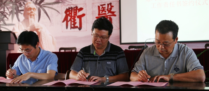 院長(zhǎng)陳震宏、黨委書記徐天才與外科片主任黃強(qiáng)簽訂責(zé)任書