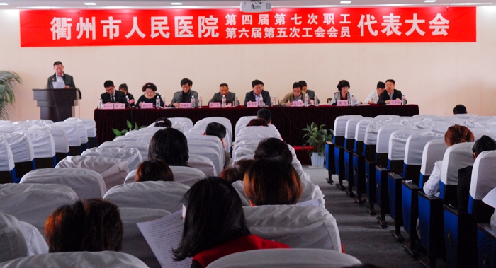 ????4月13日,我院第四屆第七次職工代表大會暨第六屆第五次工會會員代表大會在學(xué)術(shù)報告廳隆重舉行。陳震宏院長作了《醫(yī)院工作報告》,徐天才書記作了《衢州市人民醫(yī)院職工獎懲辦法》(第三次修訂)的報告,醫(yī)院工會副主席柳錫松作了《醫(yī)院工會工作報告》,王巨宏副院長作了《醫(yī)院財務(wù)工作報告》,經(jīng)審委主任沈紅作了《醫(yī)院工會經(jīng)費(fèi)審查工作報告》,工會委員胡澤富作了《提案工作報告》。