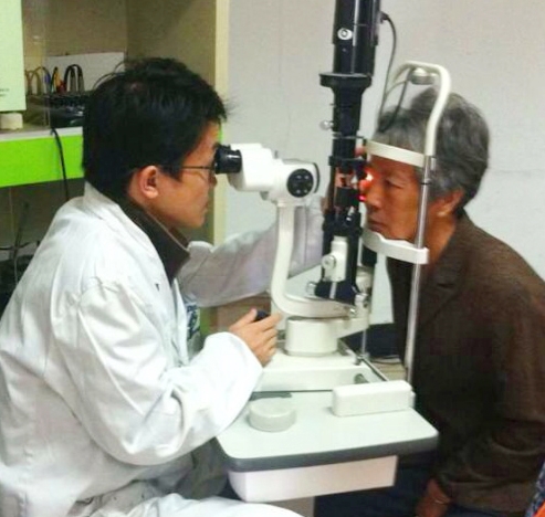 眼科劉凌醫(yī)師為病友做眼底檢查