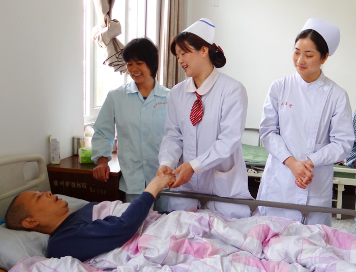 ??? 4月16日, 我院護(hù)理部副主任齊向紅一行11人走進(jìn)了衢州市社會(huì)福利院,針對(duì)失能及半失能老人存在的護(hù)理難點(diǎn)和要點(diǎn),對(duì)福利院的護(hù)理員們進(jìn)行了培訓(xùn)及指導(dǎo)。