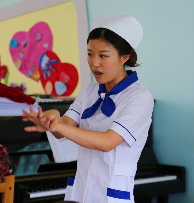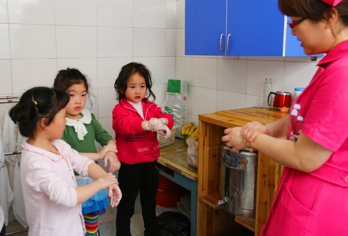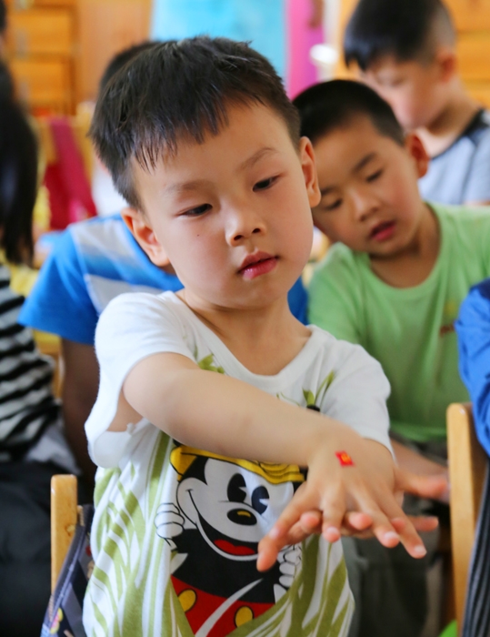 ??? 志愿者們還一對(duì)一的給孩子們進(jìn)行“六步洗手法”的示范演練,鞏固了六步洗手法的要領(lǐng),教他們學(xué)做“健康十指操”:“掌心相對(duì),手指并攏,搓搓搓;手心對(duì)手背,十指交叉,搓搓搓……”孩子們邊念步驟邊練習(xí),很快就掌握了六步洗手法。