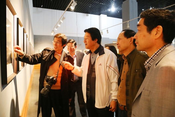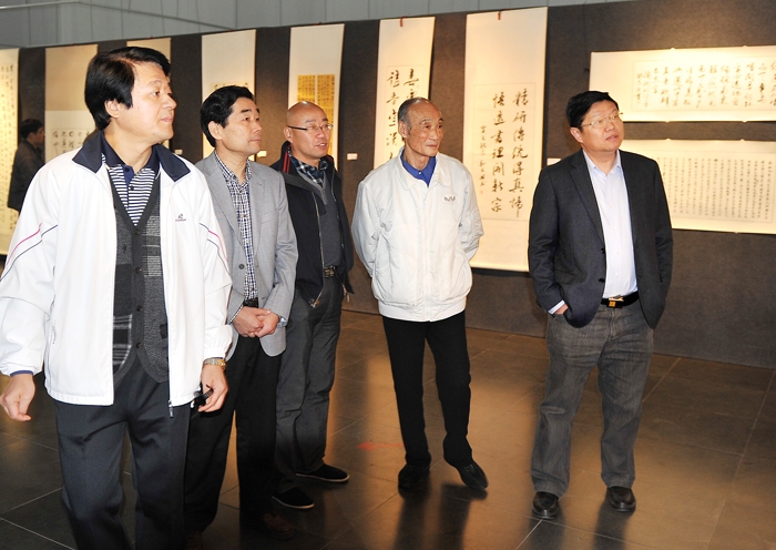 副市長(zhǎng)朱建華(圖中)參觀書(shū)法、攝影展