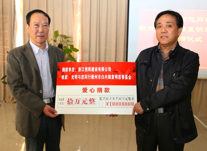 ??? 10月25日上午,由衢州市慈善總會(huì)、衢州市人民醫(yī)院共同主辦的“光明與您同行”衢市白內(nèi)障復(fù)明慈善基金捐贈(zèng)儀式在我院十二樓會(huì)議室舉行。