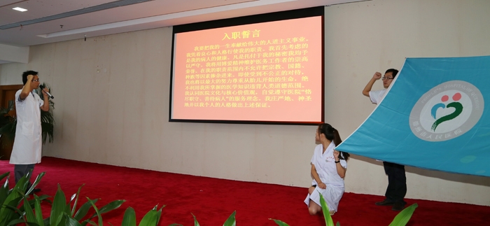 ?? “我要把我的一生奉獻給偉大的人道主義事業(yè)。我憑著良心和人格行使我的職責。我首先考慮的是病人的健康……”9月17日,我院舉行2013年新員工上崗培訓總結表彰大會。190余名新員工在院黨委書記徐天才的帶領下,面向院旗進行了莊嚴地入職宣誓。