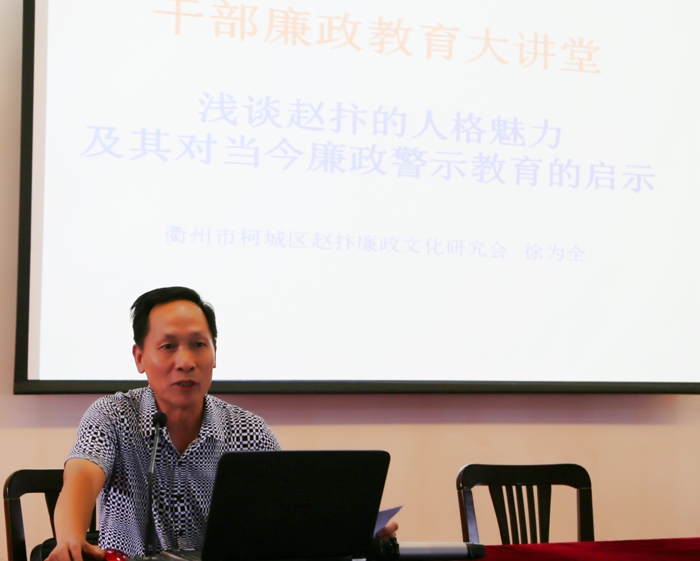 ??? 徐為全老師通過(guò)講述“鐵面御史”趙抃的事跡,充分剖析他的人格魅力,詳細(xì)介紹了趙抃廉政文化的歷史價(jià)值和現(xiàn)實(shí)廉政警示教育意義。