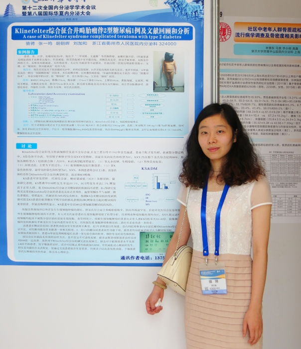 ??? 8 月21日~ 24 日中華醫(yī)學(xué)會第十二次全國內(nèi)分泌學(xué)學(xué)術(shù)會議暨第八屆華夏內(nèi)分泌大會在西安召開。我院內(nèi)分泌科駱騁醫(yī)師撰寫的論文《klinefelter綜合癥合并畸胎瘤伴2型糖尿病1例及文獻(xiàn)分析和回顧》獲得大會收錄,并作大會壁報(bào)展示交流。