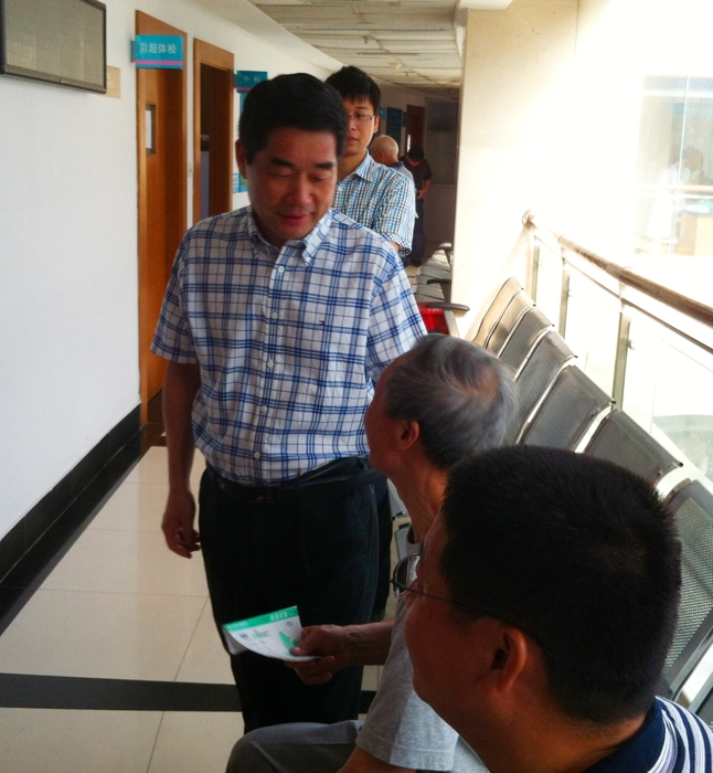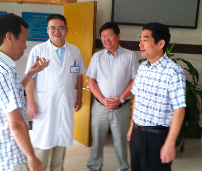 ????市衛(wèi)生局領(lǐng)導(dǎo)高度重視此次公務(wù)員體檢,7月12日上午,陳根成局長(zhǎng)、保健辦雷徐彥主任等一行在陳震宏院長(zhǎng)及余曉院長(zhǎng)助理的陪同下深入體檢工作現(xiàn)場(chǎng),檢查和督促體檢質(zhì)量。陳局長(zhǎng)對(duì)體檢中心細(xì)致、周到的導(dǎo)檢服務(wù)、合理通暢的體檢流程、整潔優(yōu)美的環(huán)境表示滿意。同時(shí),他還與受檢者親切交談,聽(tīng)取他們的感受和想法。