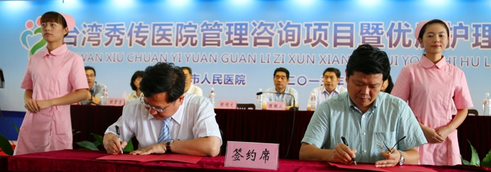 ??? 院長陳震宏在儀式上致辭。他說,此次與臺灣秀傳醫(yī)療體系簽訂合作意向書,標(biāo)志著我院與秀傳醫(yī)療管理體系的合作進(jìn)入了一個(gè)嶄新的階段,雙方不僅會(huì)在管理、服務(wù)、學(xué)術(shù)、科研等方面進(jìn)行交流,還會(huì)相互派送醫(yī)療、管理人才到雙方醫(yī)院深入培養(yǎng)學(xué)習(xí)。將充分利用兩岸醫(yī)療資源整合平臺,分享成功的醫(yī)院管理經(jīng)驗(yàn)和模式,從而全面提高我院的醫(yī)療技術(shù)及服務(wù)水平,提高各類人員的管理水平,促進(jìn)兩地醫(yī)療事業(yè)的全面合作。