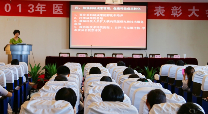 ??? 首先,副院長周見作2013年醫(yī)院科技工作總結(jié)報告。她指出,近年來我院的科技工作發(fā)展迅速,2012年申報科研立項共53項,其中國家級1項,省部級25項,市級27項??蒲薪?jīng)費總額實現(xiàn)飛躍,由2009年的56萬元攀升至2012年的230萬元,并創(chuàng)下年度歷史新高。 科研成果數(shù)量逐年增加,層次不斷提升,2012年下半年-2013上半年我院共獲各級各類立項共26項,其中:省科技廳公益類項目2項,省自然科學(xué)基金1項,吳階平醫(yī)學(xué)基金項目1項,省衛(wèi)生廳醫(yī)藥衛(wèi)生科技項目2項,省中醫(yī)藥項目1項,省教育廳項目1項,市科技局18項。發(fā)表各級各類學(xué)術(shù)論文148篇,其中I類以上期刊論文32篇,SCI收錄2篇。2012年醫(yī)院首次設(shè)立了院級科研立項,共評審確定資助項目33項其中:青年人才(35周歲以下)培養(yǎng)計劃項目5項,博(碩)士生專項研究計劃項目11項,博(碩)導(dǎo)團隊專項研究計劃項目4項,院集體攻關(guān)項目1項及一般研究計劃項目12項。并且首次承擔(dān)全日制碩士研究生培養(yǎng)任務(wù),標(biāo)志我院具備自行培養(yǎng)碩士研究生的能力。