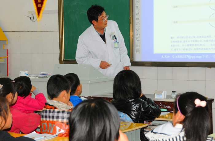 ??? 此次活動,共為學校一至四年級11個班的學生做了視力檢查和口腔常規(guī)檢查,發(fā)放科普小畫冊900余份。在體檢活動開展的同時,眼科毛思紅主任醫(yī)生走進課堂為小朋友們講解了眼結(jié)構(gòu)簡介?,結(jié)膜炎防治、點眼藥水方法、正確洗手等衛(wèi)生知識。以圖文并茂的形式介紹遠視、近視,近視的成因和正確的讀寫姿勢,鼓勵大家注意用眼衛(wèi)生,保護視力。