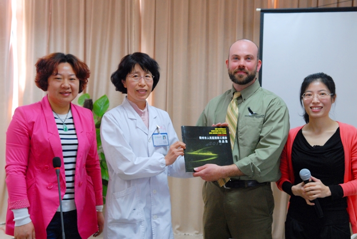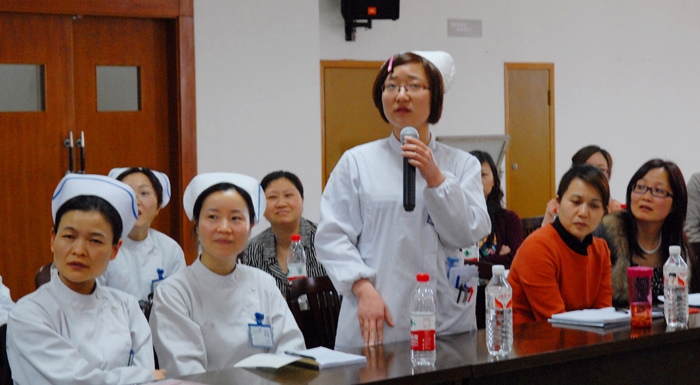 ??? 近年來,我院一直致力于為護(hù)理人員提供近距離與國際專家學(xué)習(xí)交流的機(jī)會(huì),使護(hù)理理念和護(hù)理水平與國際接軌,推動(dòng)醫(yī)院醫(yī)療技術(shù)水平的進(jìn)一步提高。這次邀請(qǐng)到了來自美國明尼蘇達(dá)州東南科技學(xué)院的“喬治·布萊德利·阿爾索普(George Bradley Alsop)”教授來進(jìn)行關(guān)于醫(yī)院管理的交流,聽取布萊德利先生介紹美國的護(hù)理教育和護(hù)理管理。本次會(huì)議全程由我院兒科護(hù)士洪顏翻譯并介紹我院的護(hù)理管理和護(hù)理教育體系,隨后雙方進(jìn)行了互動(dòng)交流。