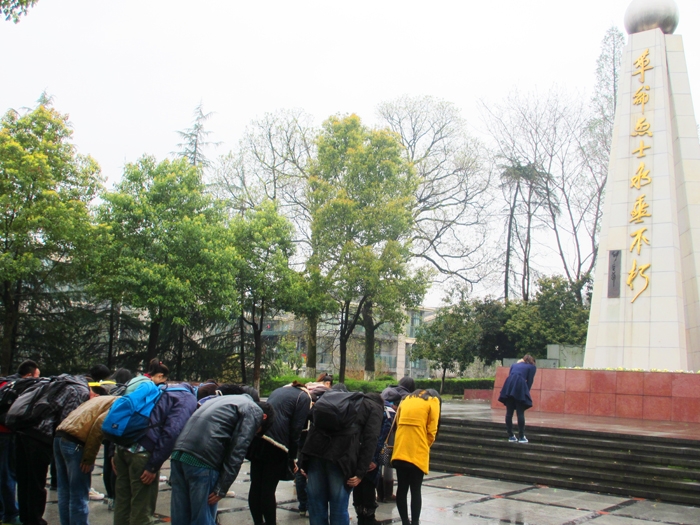 ??? 當(dāng)日,冒著蒙蒙小雨,全科班同學(xué)在班主任呂穎果老師的帶領(lǐng)組織下,懷著無(wú)限崇敬的心情前往衢州六烈士陵園?;顒?dòng)開(kāi)始團(tuán)支書林彤穎代表全班同學(xué)向革命烈士致辭,接著,同學(xué)們向革命烈士墓敬獻(xiàn)了鮮花,并為烈士默哀。最后,學(xué)生代表在烈士墓前演講,表達(dá)了緬懷先烈,努力學(xué)習(xí),發(fā)奮圖強(qiáng),報(bào)效祖國(guó)的決心。儀式結(jié)束后,同學(xué)們秩序井然地參觀烈士陵園。