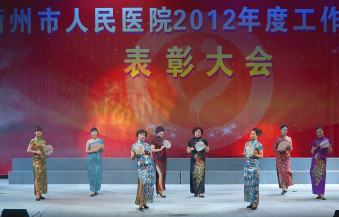 ??? 接下來,后勤片的合唱《回娘家》帶大家重溫經(jīng)典老歌,外科片幽默風(fēng)趣的小品《衢醫(yī)好聲音》,護(hù)士長們古典優(yōu)雅的《旗袍秀》,更是把晚會(huì)推向了高潮。離退休員工的《菊花臺(tái)》、新員工的《斗牛舞》和衢醫(yī)班的《拉丁健美操》共同演義我們醫(yī)院的昨天、今天和明天。院葫蘆絲俱樂部獻(xiàn)上的葫蘆絲合奏《映山紅》,是新穎而又獨(dú)特的節(jié)目。