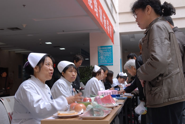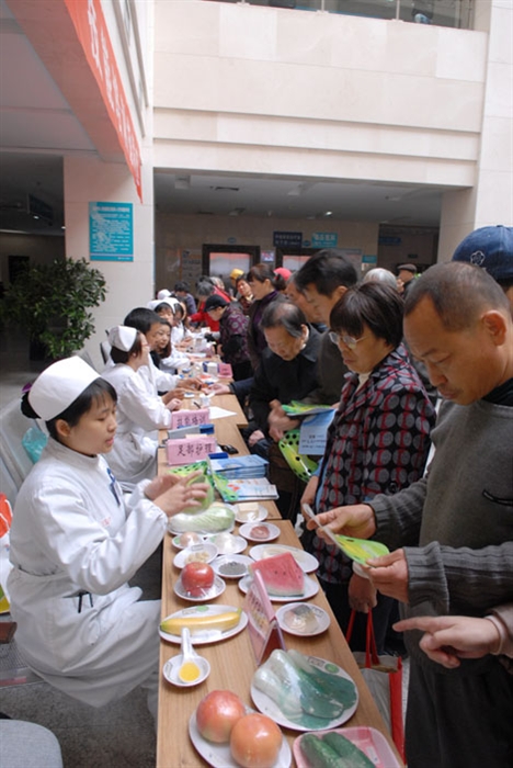 ??? 11月14日是世界第六個(gè)聯(lián)合國糖尿病日。前兩天通過報(bào)紙、短信得知市人民醫(yī)院舉辦大型糖尿病義診及宣教活動(dòng),不少市民一大早就趕到那里。不一會(huì),幾位內(nèi)分泌代謝科專家前面就聚集了不少前來問詢的人。義診專家一邊耐心地傾聽著市民朋友的咨詢,一邊微笑著跟他們聊起家長(zhǎng)里短,在聊天的過程中將一些糖尿病防治知識(shí)普及給他們,效果明顯。義診現(xiàn)場(chǎng)還專門設(shè)立了免費(fèi)血糖測(cè)量點(diǎn)和宣教資料發(fā)放點(diǎn),專門帶了各種胰島素注射器現(xiàn)場(chǎng)為市民講解使用規(guī)范和技巧,受到了大家的贊賞。