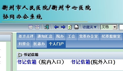 ??? 該院職工有關(guān)于醫(yī)院民主管理、政治思想工作及行業(yè)作風(fēng)建設(shè)等方面的建議、意見(jiàn),可以點(diǎn)擊醫(yī)院網(wǎng)站進(jìn)入內(nèi)網(wǎng)(OA網(wǎng))或直接通過(guò)內(nèi)網(wǎng)個(gè)人門戶下的“書記信箱”一欄,進(jìn)入“書記信箱”給書記留言。