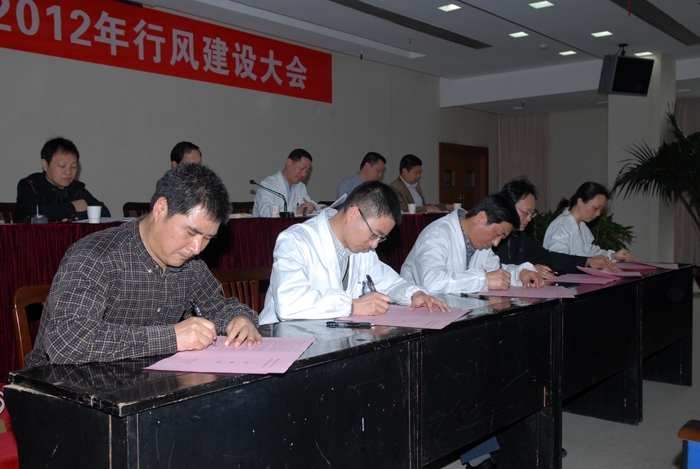 會議由毛力非副院長主持。蔣一鳴副書記首先總結(jié)了2011年我院在行風建設(shè)和反腐倡廉方面取得的成績,并布置了今年醫(yī)院的行風建設(shè)工作。醫(yī)院各黨支部和部分科室代表還與院黨委現(xiàn)場簽定了《衢州市人民醫(yī)院2012年度黨風行風建設(shè)個反腐倡廉工作責任書》。