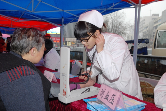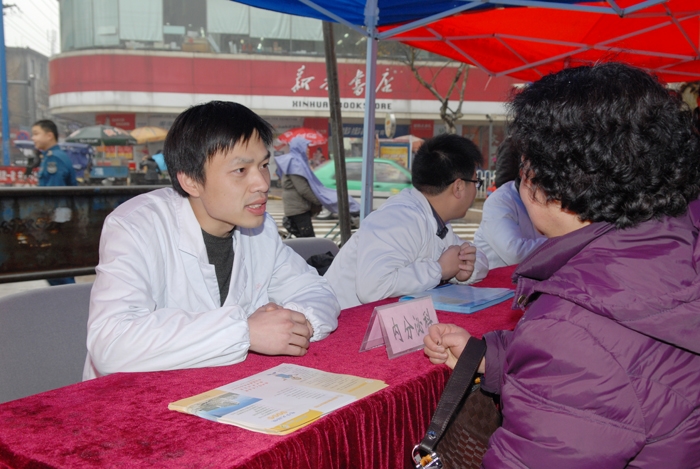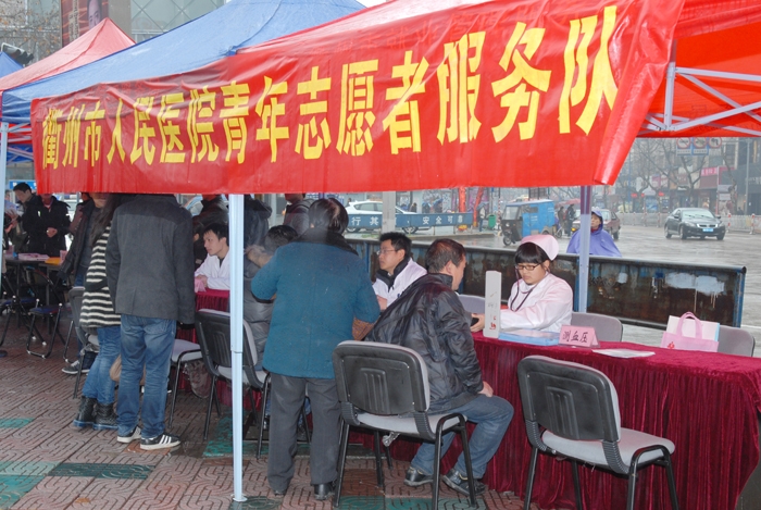 ??? 今年3月5日是毛澤東同志“向雷鋒同志學(xué)習(xí)”題詞發(fā)表49周年,今年也是雷鋒同志犧牲50周年。為傳承雷鋒精神,用實(shí)際行動(dòng)發(fā)揚(yáng)雷鋒精神,3月4日上午,我院團(tuán)委參加了由團(tuán)市委組織的“學(xué)習(xí)雷鋒好榜樣,爭(zhēng)做最美衢州人”主題實(shí)踐活動(dòng),由醫(yī)院團(tuán)員志愿者組成的醫(yī)療服務(wù)小分隊(duì)在市區(qū)下街路口為市民進(jìn)行義診服務(wù)。