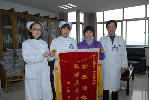 汪女士說,她父親因慢性腫塊型胰腺炎于2011年11月12日住進我院十一病區(qū)。入院時的身體狀況極為不好,并且脾氣暴躁,時常言語攻擊醫(yī)護人員,不配合治療,但是主管醫(yī)生周一農(nóng)及其他醫(yī)護人員非常耐心,給予她父親親人般的照顧。她父親本身患有多種疾病,手術(shù)風(fēng)險很大,可是此次不動手術(shù),他父親只有面臨死亡。經(jīng)入院一個多月的調(diào)理,周醫(yī)生頂著巨大的壓力為她父親實施部分胃切除,胰十二指腸切除和膽管吻合術(shù)。手術(shù)后,周醫(yī)生考慮到她父親生性固執(zhí),如果在手術(shù)室蘇醒后見不到親人,很有可能會拔掉身上插的維系生命的管子,周醫(yī)生就一直陪著她父親直到出手術(shù)室。手術(shù)后周醫(yī)生對我父親加倍關(guān)心,休息時也會來病房了解我父親的病情,逗她父親開心,為他加油打氣。