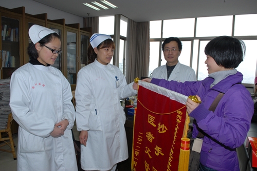 1月20日,市民汪女士特意來到我院為十一病區(qū)的醫(yī)護人員送上一面錦旗和一封感謝信。感謝主管醫(yī)生周一農(nóng)無私的愛心,高尚的醫(yī)德,精湛的技術(shù),及病區(qū)其他醫(yī)護人員的悉心照料,使她父親戰(zhàn)勝病魔,獲得了新生。