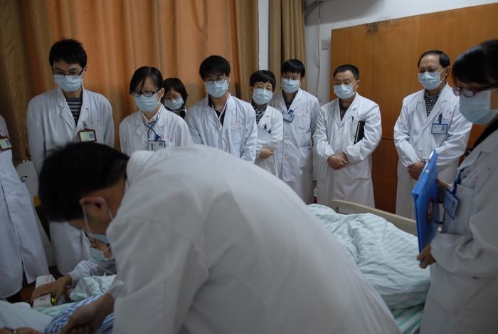 徐院長一行參加了病區(qū)的晨間交接班和三級醫(yī)師查房,并召開了院長查房現(xiàn)場會。