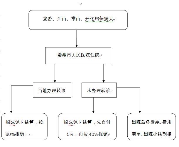 統(tǒng)籌區(qū)外居保病人住院報(bào)銷流程圖 文章來源:醫(yī)保辦 作者: 點(diǎn)擊數(shù):12773 更新時(shí)間:2017-04-27 注:意外傷害病人一律不刷卡,自費(fèi)結(jié)算。同類疾病后續(xù)治療認(rèn)定憑同類疾病轉(zhuǎn)診記錄到為其轉(zhuǎn)診的首診醫(yī)療機(jī)構(gòu)辦理特殊情況認(rèn)定;臨時(shí)急性起病認(rèn)定到當(dāng)?shù)匦l(wèi)生院辦理特殊情況認(rèn)定。符合同類疾病后續(xù)治療、臨時(shí)外出急性起病的患者在出院結(jié)算前辦理過特殊情況認(rèn)定可直接在醫(yī)院刷卡報(bào)銷。 上一篇: 衢州市柯城區(qū)城鎮(zhèn)居民醫(yī)療保險(xiǎn)報(bào)銷范圍和標(biāo)準(zhǔn) 下一篇: 最多跑一次”又升級(jí)!28種大病保險(xiǎn)特殊用藥,在衢州這些藥店可刷卡結(jié)算
