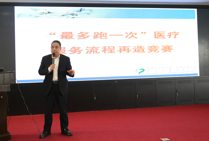 為進(jìn)一步強(qiáng)化醫(yī)護(hù)人員服務(wù)意識(shí),創(chuàng)新各項(xiàng)醫(yī)療服務(wù)舉措,優(yōu)化服務(wù)流程,深入貫徹落實(shí)醫(yī)療服務(wù)領(lǐng)域“最多跑一次”的改革工作,11月28日下午,我院開展了“最多跑一次”醫(yī)療服務(wù)流程再造專項(xiàng)競賽活動(dòng)。特邀市行政服務(wù)中心管理辦公室黨組成員、副主任陸日忠、市“最多跑一次”改革專班成員徐鵬出席本次競賽活動(dòng)并擔(dān)任評(píng)委。