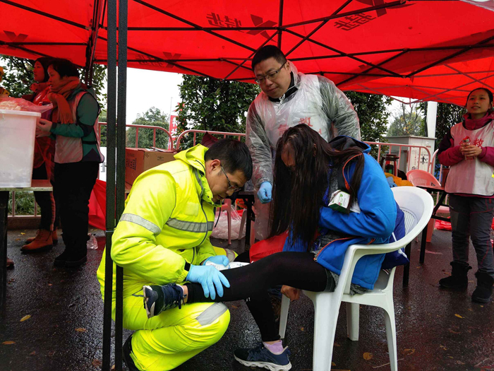 隨著賽事的進(jìn)行,賽道上不斷出現(xiàn)頭暈嘔吐、扭傷擦傷甚至?xí)炟市菘说膮①愡x手,這些傷情在咱們訓(xùn)練有素的急救人員手上都是小case,分分鐘解決!