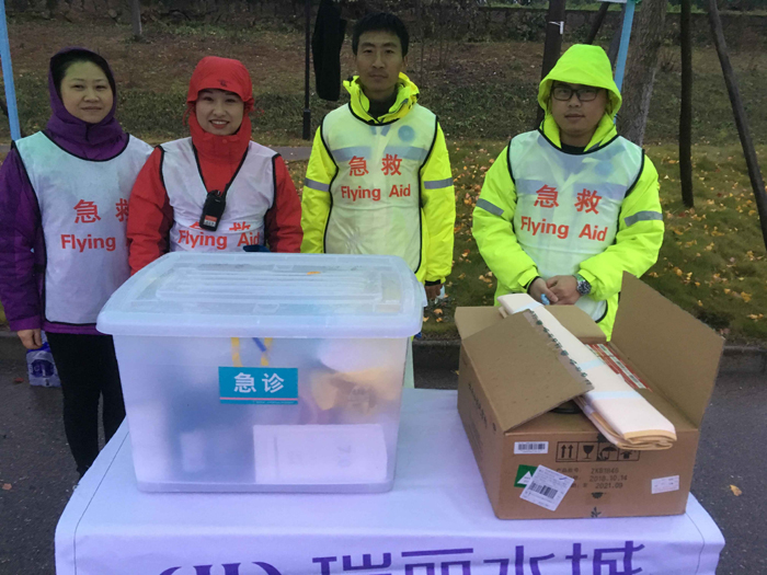 根據(jù)市衛(wèi)生計生委統(tǒng)籌協(xié)調(diào)安排,我院負(fù)責(zé)賽道起點、半馬、全馬終點沖刺區(qū)、賽道 25km 處、賽道 35km 處 3 個醫(yī)療站點醫(yī)療保障。安排了2輛救護(hù)車,隨車配備1名醫(yī)生、1名護(hù)士,嚴(yán)格按照國家重大賽事醫(yī)療保障配置標(biāo)準(zhǔn),在救護(hù)車上配置擔(dān)架、除顫儀、車載呼吸機等醫(yī)療設(shè)備及急救藥品。安排了1 輛收容車的跟車保障,以及4 個移動 AED 站點。